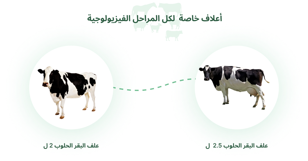 مصمم لبقر الألبان ذات الإنتاجية العالية، يتم توزيعه مع نظام غذائي أساسي متوازن ومصحح بمعدل 1 كجم من العلف لكل 2.5 لتر من الحليب الإضافي.